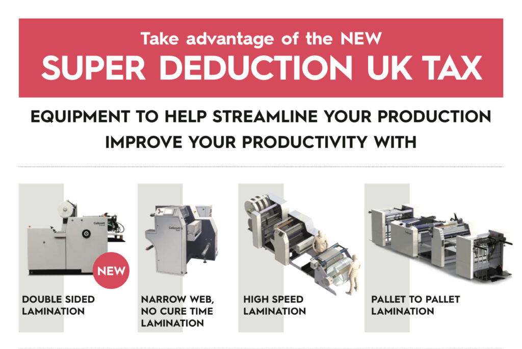 To find out more about the Government’s Super Deduction scheme for plant & machinery, visit https://www.gov.uk/guidance/super-deduction. For further information about the CellCoat T30, or any of our lamination machines, get in touch.